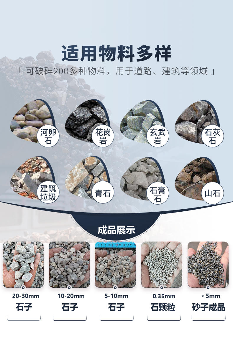 注:产量根据不同物料,进料粒度等因素其结果将有所不同